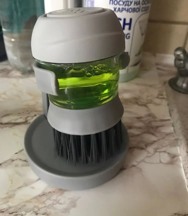 Nunca vi algo tão prático! Coloco o sabão dentro, aperto e pronto — limpo tudo sem molhar as mãos. Dá gosto cuidar da cozinha assim!