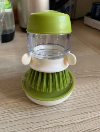 A escova é maravilhosa, super prática e deixa tudo limpo rapidinho 😍 Só notei que vaza um pouquinho de detergente do suporte se ficar muito cheia, mas nada demais. Amei que já vem com um suporte de gotejamento, resolveu totalmente! 💧